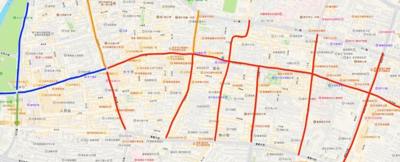 40路:由火車站始發(fā),原路線運行至建國路后,經七一東路、德令哈路、夏都大街恢復原路線。