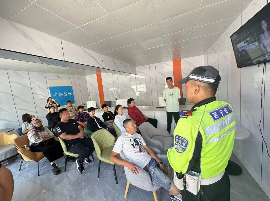 △交警進(jìn)駕校,為報(bào)名學(xué)員提前講授文明交通“第一課”。
