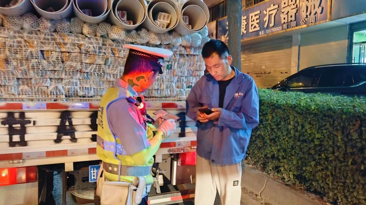 △夜查貨運(yùn)車輛重點(diǎn)交通違法。