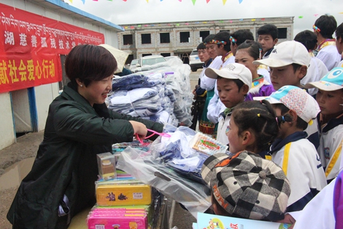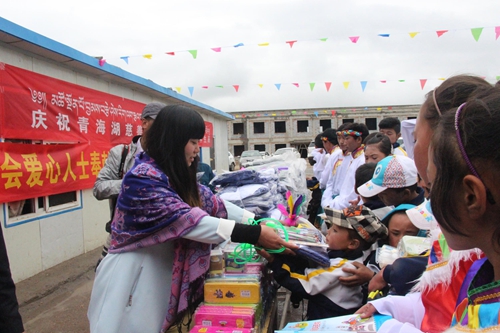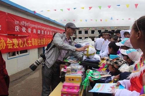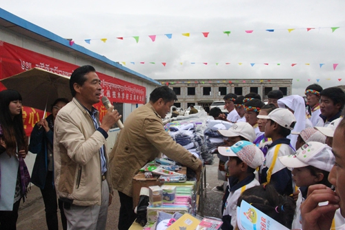 西寧希藝慶典廣告策劃有限公司總經(jīng)理為孩子們發(fā)放學(xué)習(xí)用品