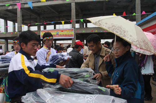 愛心企業(yè)人士共同為孩子們分發(fā)學(xué)習(xí)用品