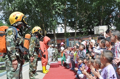 為了讓孩子們提高安全防火意識,6月9日,青藏兵站部機關(guān)幼兒園的教師帶領(lǐng)孩子們前往城西區(qū)消防中隊進行參觀,在現(xiàn)場,官兵們?yōu)楹⒆觽冄菔玖藴缁稹⒎阑鸬膱鼍埃o孩子們留下了深刻的印象。