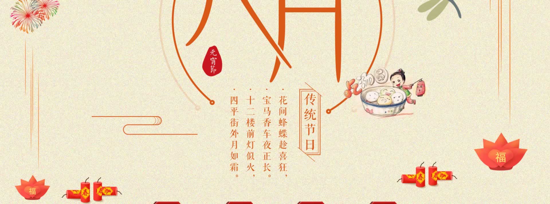 農(nóng)歷正月十五元宵節(jié),又稱為“上元節(jié)”(Lantern Festival),上元佳節(jié),是中國漢族和部分兄弟民族的傳統(tǒng)節(jié)日之一,亦是漢字文化圈的地區(qū)和海外華人的傳統(tǒng)節(jié)日之一。漢族傳統(tǒng)的元宵節(jié)始于漢代,正月是農(nóng)歷的元月,古人稱夜為“宵”,而十五日又是一年中第一個月圓之夜,所以稱正月十五為元宵節(jié)。又稱為小正月、元夕或燈節(jié),是春節(jié)之后的第一個重要節(jié)日。 在漢族古俗中,上元節(jié)(元宵節(jié))﹑中元節(jié)(盂蘭盆節(jié))﹑下元節(jié)(水官節(jié))合稱三元,都是非常傳統(tǒng)重要的節(jié)日。 中國幅員遼闊,歷史悠久,所以關(guān)于元宵節(jié)的習(xí)俗在全國各地也不盡相同,其中吃元宵、賞花燈、猜燈謎等是元宵節(jié)幾項(xiàng)重要民間習(xí)俗。